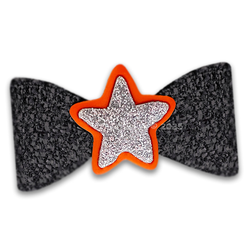 Add a magical touch to Halloween with the Starry Night bow, sparkling with celestial charm for a fun and festive look! Stiffened for extended wear. Petite size, approx 1.5" wide.